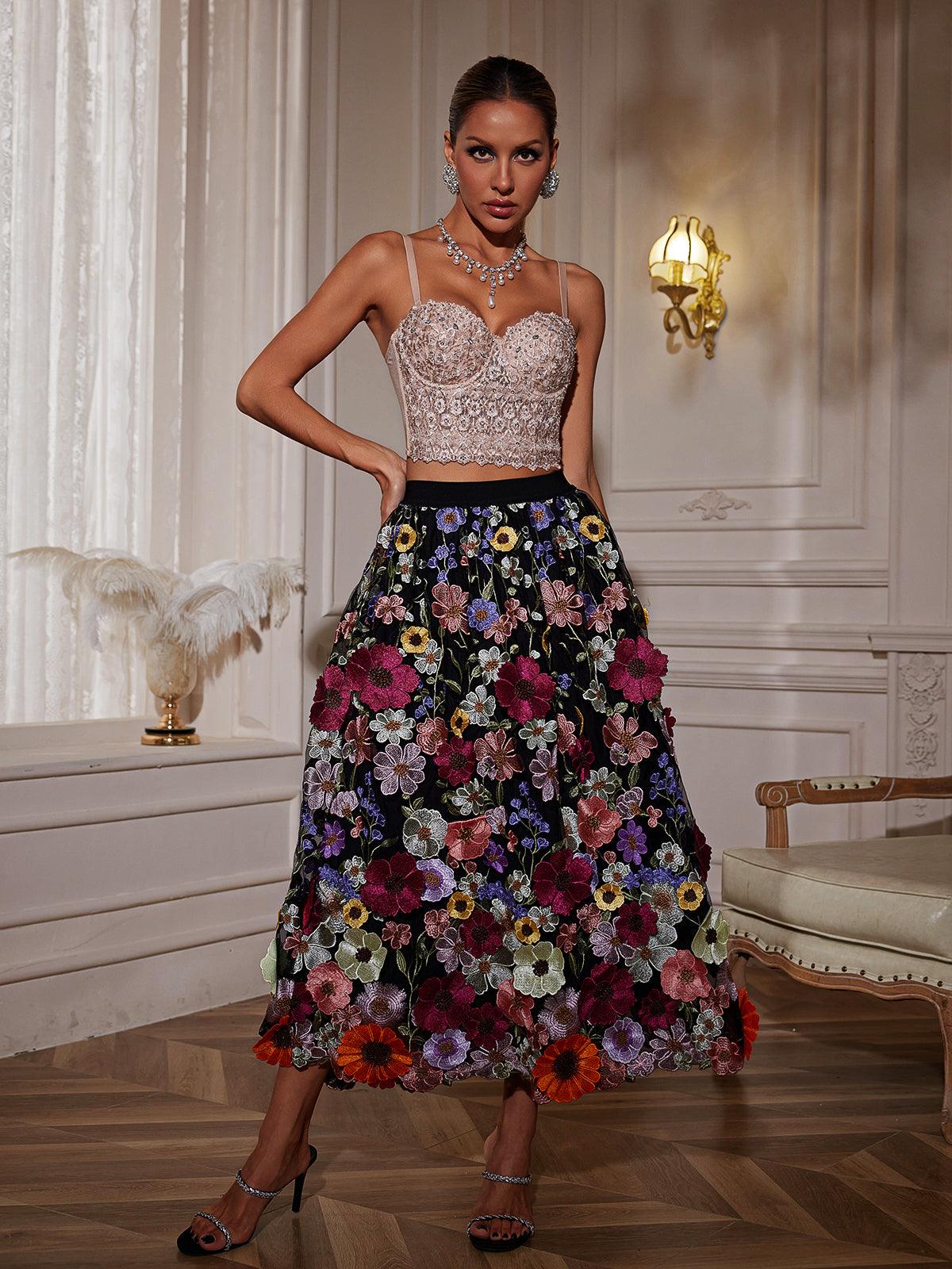 Unleash your inner fashionista with the Amory Flower Embroidered Skirt In Black. This stunning skirt features intricate floral embroidery that adds a touch of elegance and charm. Made with high-quality material, it offers comfort and style. Perfect for any occasion, this skirt will be your go-to for a timeless and chic look.