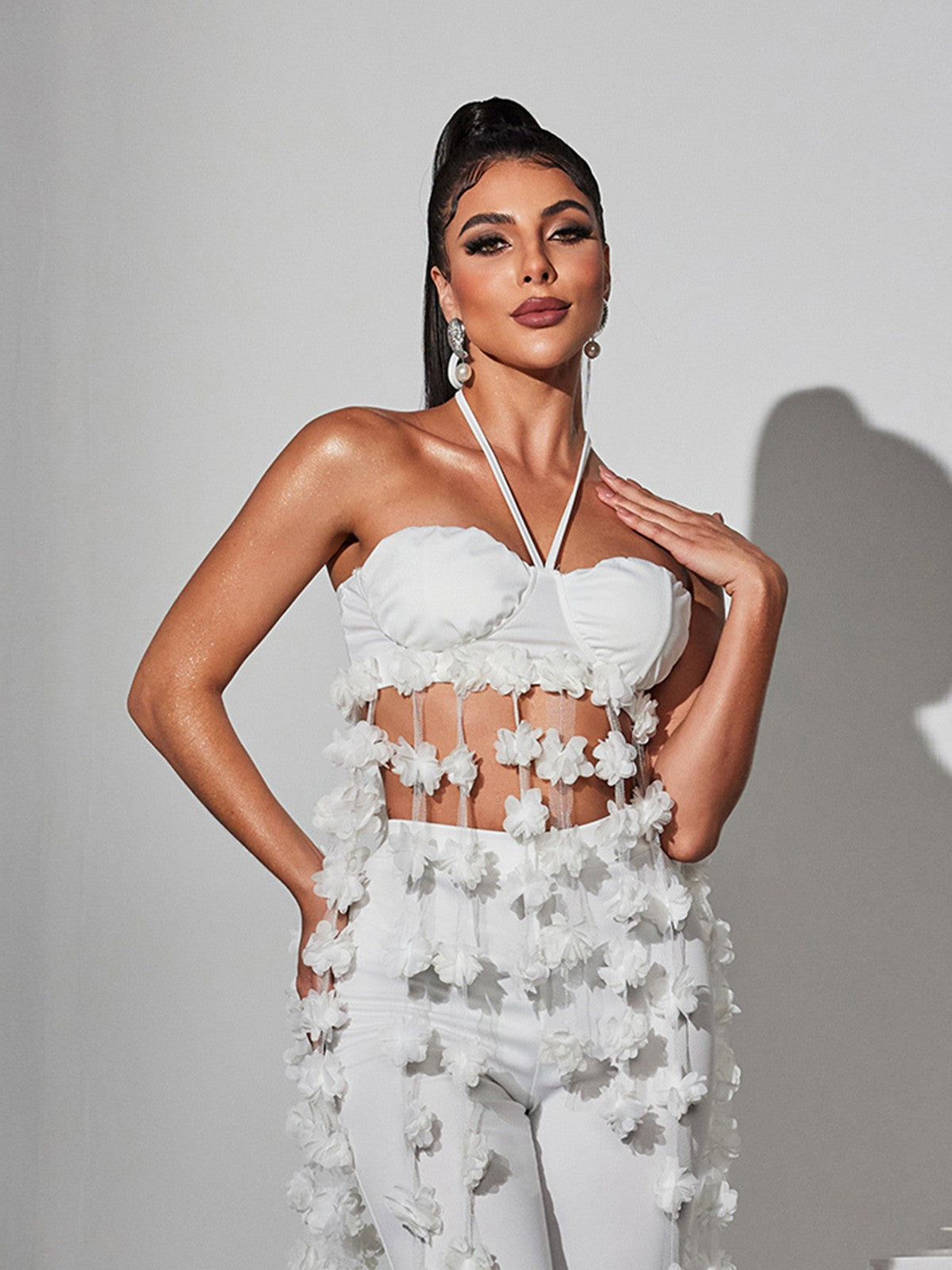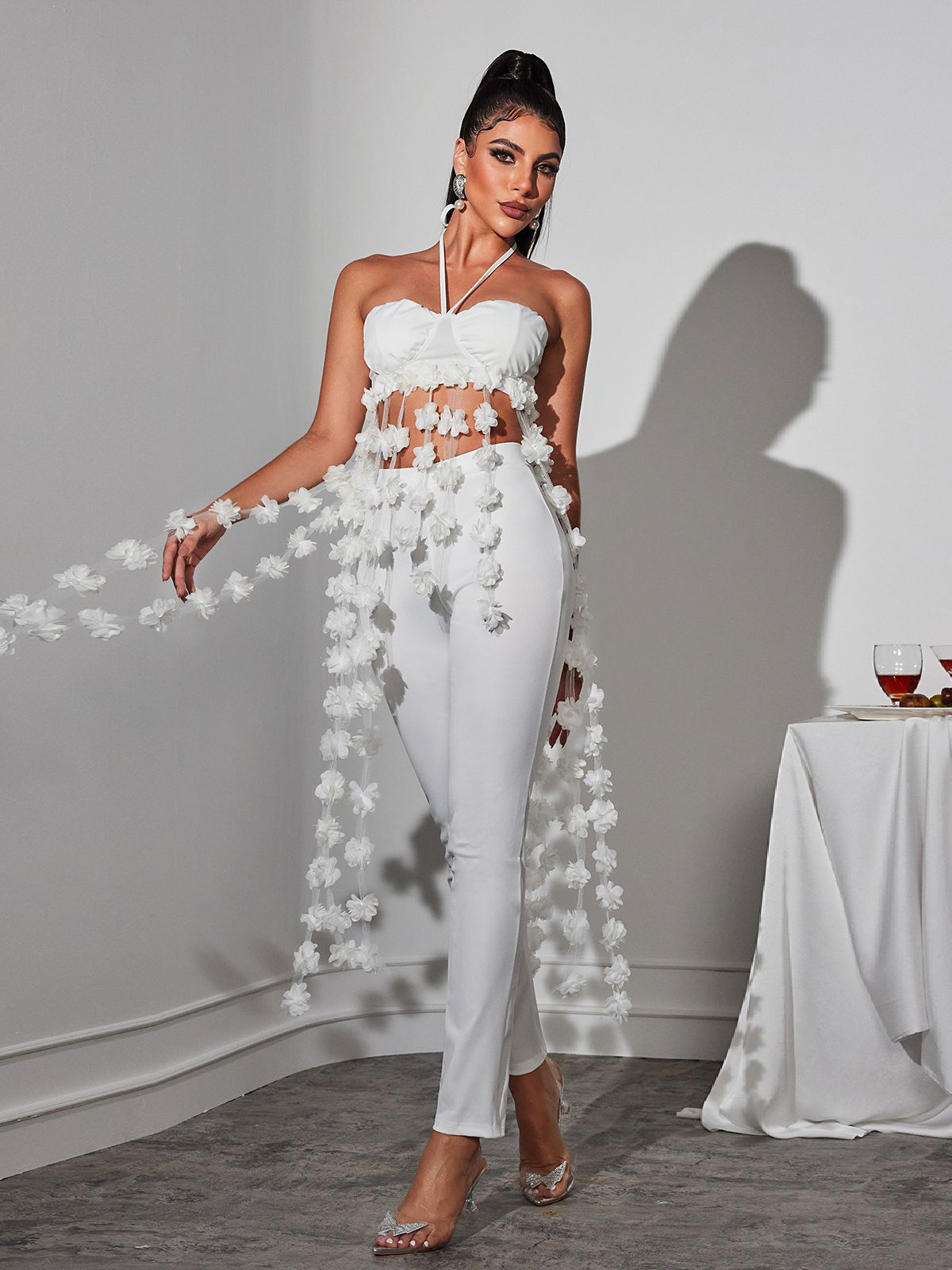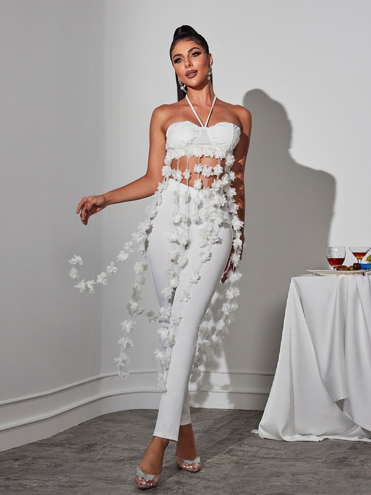 Get ready to turn heads in this Kevon Halterneck Flower Pants Set! With its eye-catching halterneck design and vibrant floral pattern, this set will make you stand out from the crowd. Designed for those who want to make a statement, this set is perfect for any occasion. Elevate your style and make a lasting impression with the Kevon Halterneck Flower Pants Set.